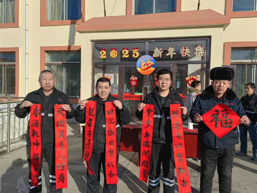 在“迎新春、送春聯”活動現場,翰墨飄香,暖意融融,一張張紅色宣紙徐徐鋪開,書法愛好者鄒波、牛建勃圍繞“蛇年”主題,專心致志思“對聯”,凝心聚力揮毫潑墨,提筆、蘸墨、運筆,將新春祝福用筆尖無聲呈現出來,職工一邊欣賞精美書法,一邊挑選心儀對聯。活動共送出春聯、福字60余副。