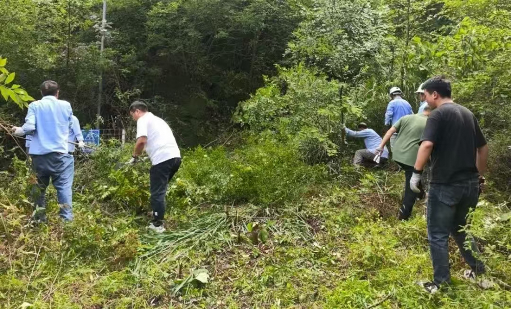 因長期停用,炸藥庫周邊雜草叢生、灌木密布,部分區域雜草高達兩米,不僅影響安全巡查,還存在多種風險。現場,職工們手持割草機、鐮刀、鐵鍬等工具,分工協作:年輕職工主動承擔割草、砍伐重任,老員工則負責理碎石、搬運雜物,黨員先鋒們更是一馬當先,帶頭攻堅復雜區域。盡管汗水浸透工裝,雙手磨出水泡,但無人喊苦叫累,展現出強大的團隊凝聚力。